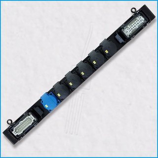 Die traditionellen, extrem robusten Traversenverteiler aus Alu-Profil 60x40mm mit geringstem Platzbedarf. Für alle, die sich im Truss nicht komplett ins Plastikzeitalter begeben wollen. Aufsplittung eines Multicore-Eingangs auf 6 oder 8 Schukos, blaue CEE-Dosen oder anderweitige Abgänge. Oberseitige Ösen oder Bolzen zur Traversenmontage. Optional durchgeschliffener Multicore-Ausgang oder komplett in schwarz.